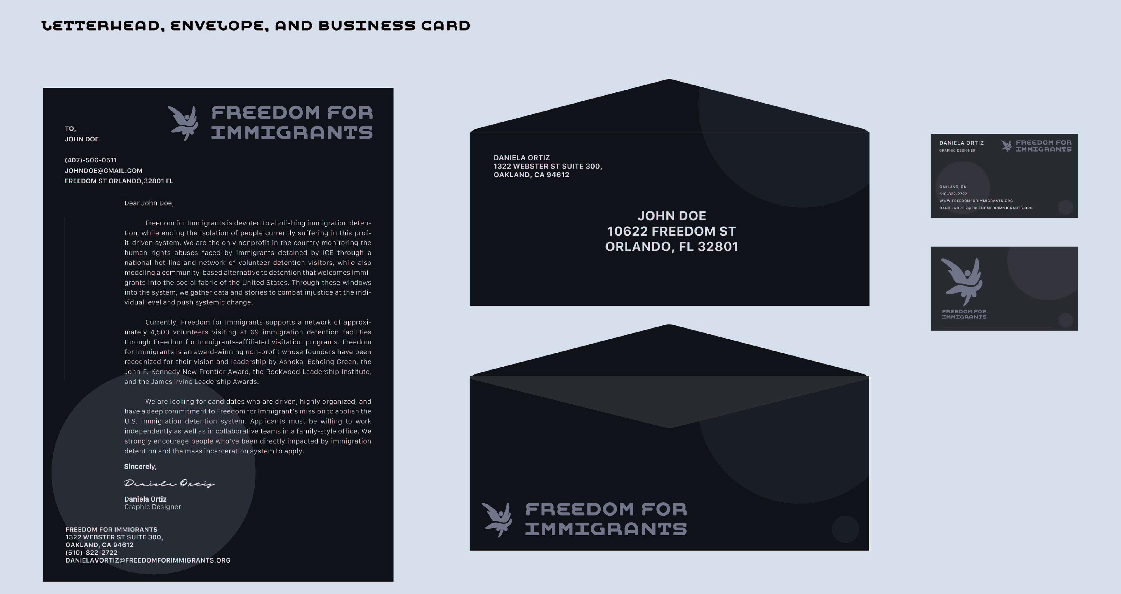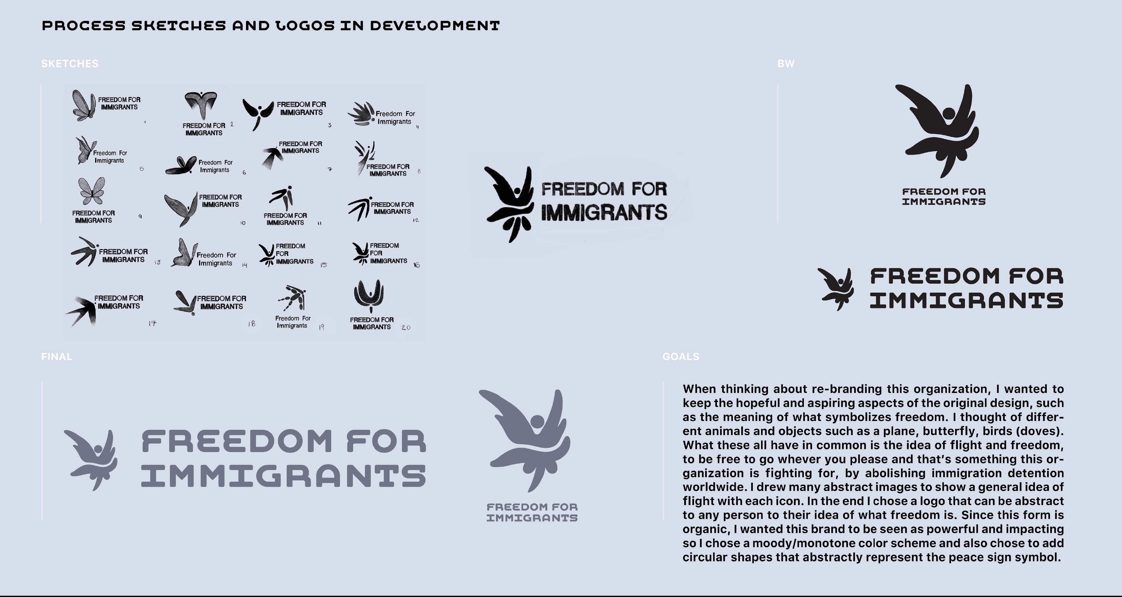 Fictional rebrand of a real non-profit that is dedicated to abolishing immigration detention worldwide, while ending the isolation of people currently suffering in this profit-driven system.